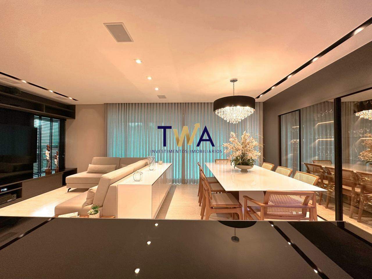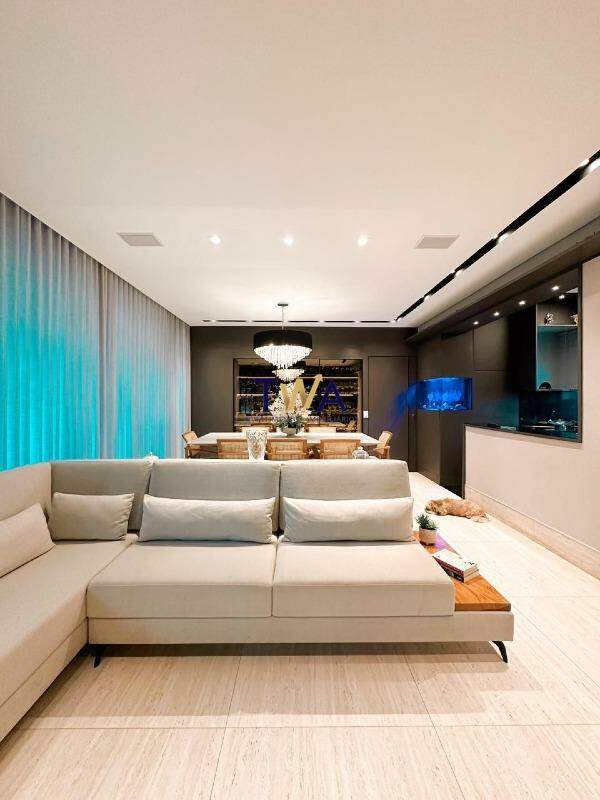 Sala generosa com 3 ambientes, varanda gourmet com churrasqueira ( o ambiente pode ser usado independente ou integrado) churrasqueira e área de convivência.