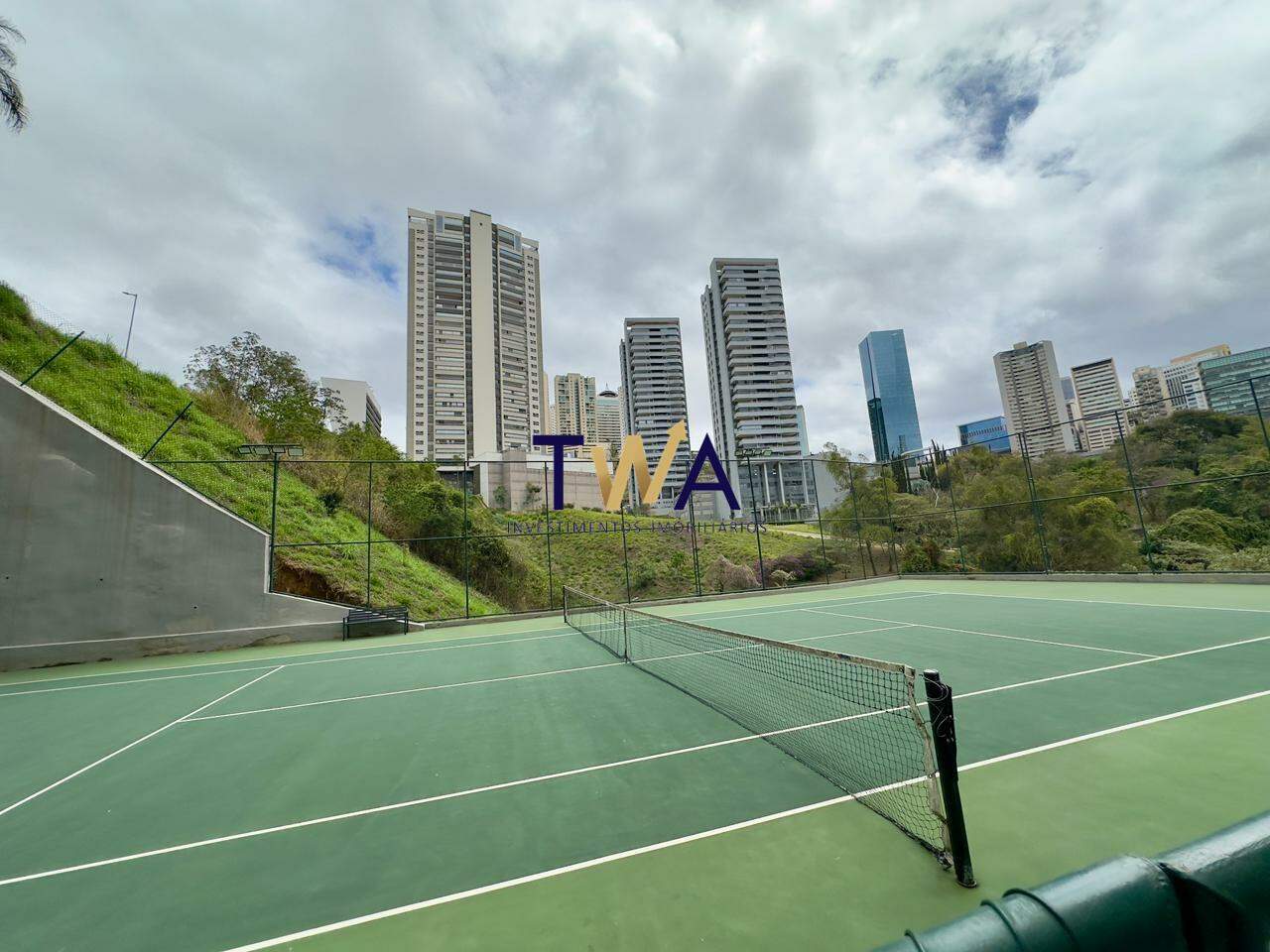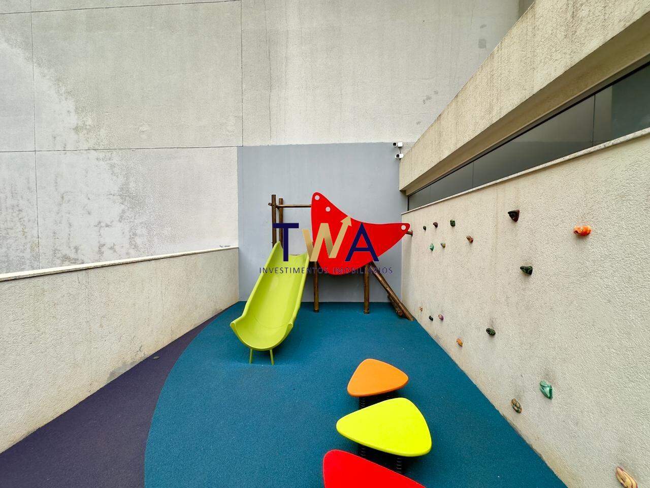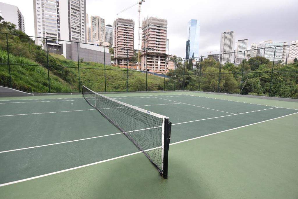 Prédio torre única da construtora FCF. Lazer possui academia, salão de festas, espaço gourmet, quadra de tênis, piscina e espaço kids.