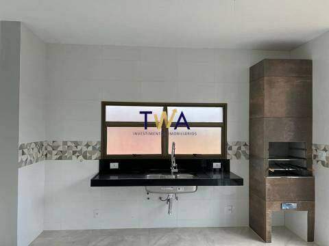 Cozinha integrada, equipada com coifa e cooktop, conectada ao espaço gourmet.