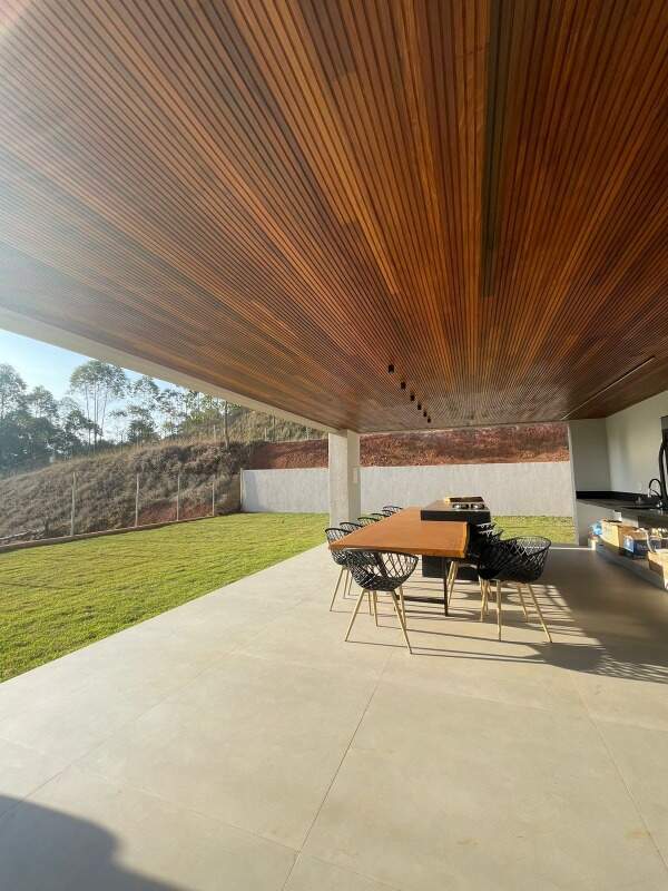 A área social desta casa é verdadeiramente impressionante. A ampla varanda gourmet é um local de encontro perfeito para momentos de entretenimento e descontração. Equipada com uma churrasqueira de alta qualidade e um lavabo, essa área é o cenário ideal para receber amigos e familiares em grande estilo. Além disso, a vista para a bela área verde ao redor adiciona um toque de serenidade e beleza.