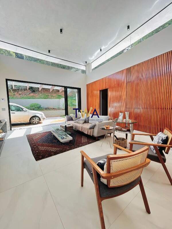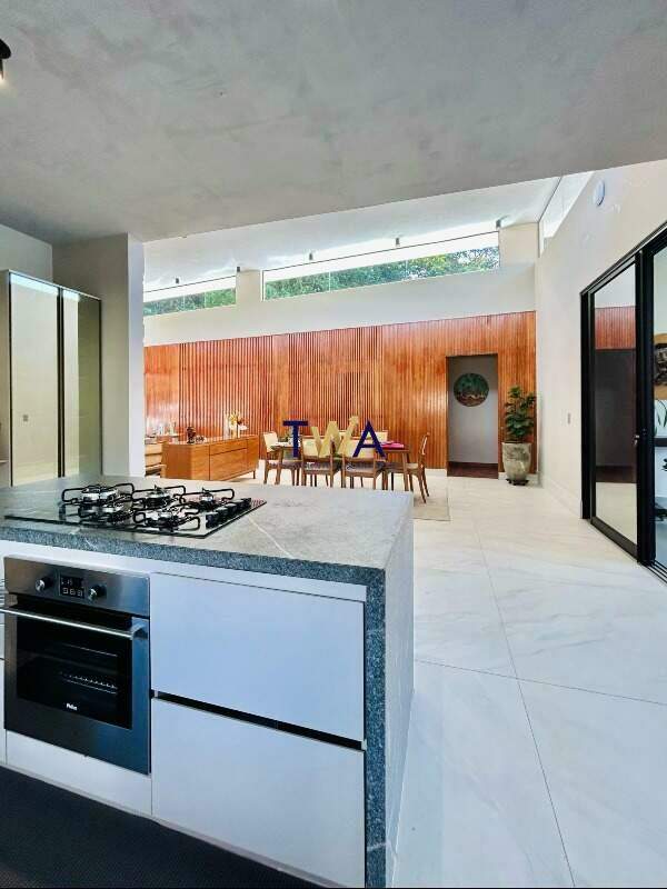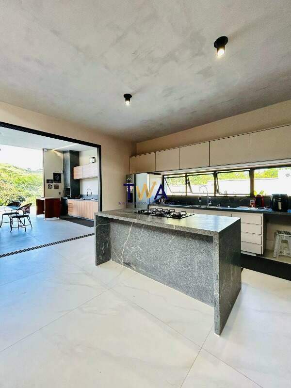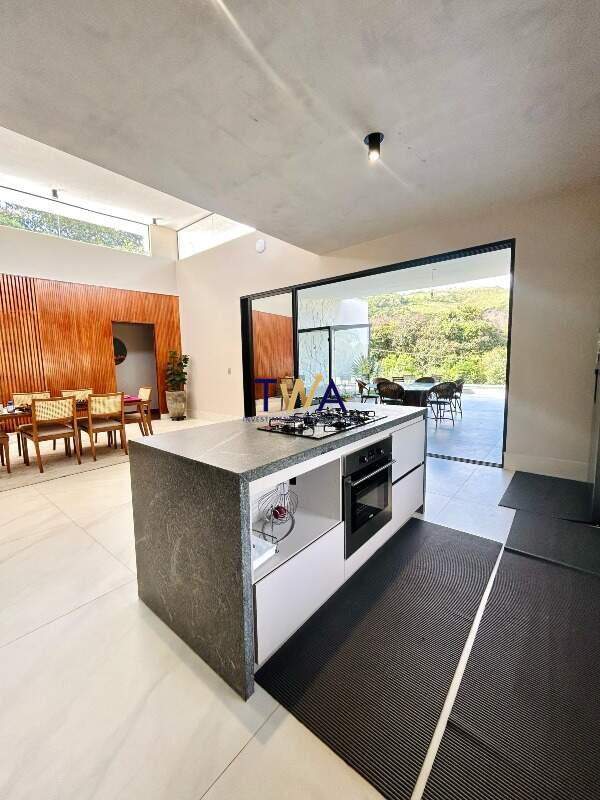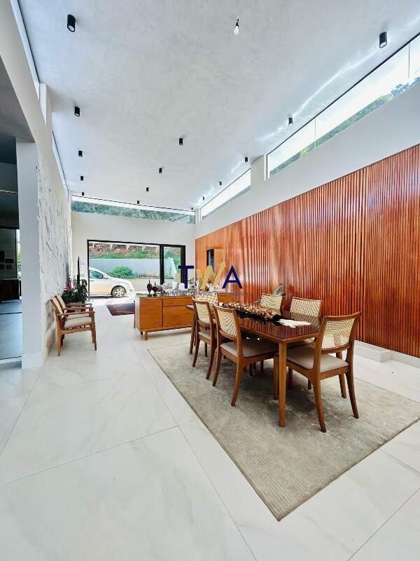 São 380m², sala ampla para 4 ambientes com pé direito duplo, integrada com área externa e cozinha. Piscina com borda infinita e visual para as montanhas. Cozinha toda montada com área de serviço e DCE.