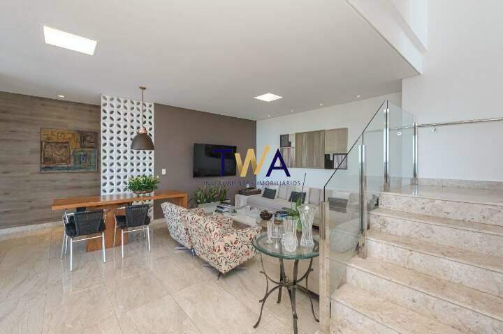 Infraestrutura: Arquitetura bioclimática, sistema fotovoltaico, elevador com baixo consumo de energia, aquecimento solar de água para consumo, que atende o banheiro e cozinha, e sistema solar independente para a piscina, escada com vista panorâmica, sauna a vapor, persianas elétricas nos quartos com abertura até os pisos, armários planejados em todos os quartos, banheiros, salas, cozinha e área de serviço, área gramada de 200m² que pode ser usado para ampliação da residência.