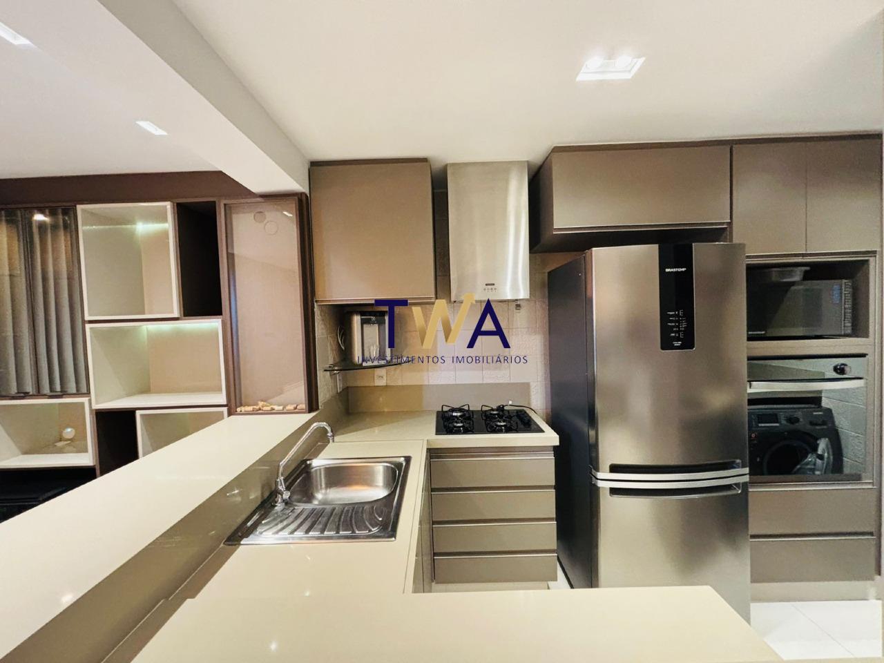 Cozinha com armários e todos os eletrodomésticos de ultima geração inclusive na área de serviço.