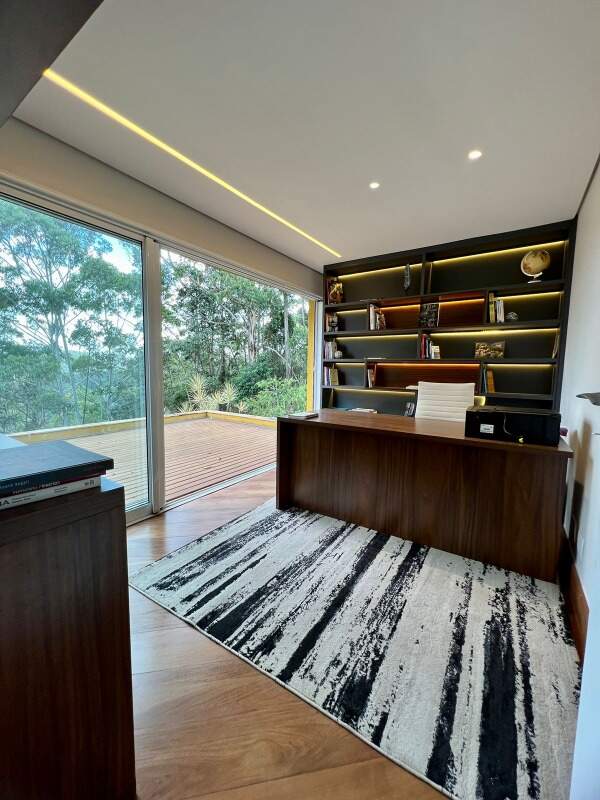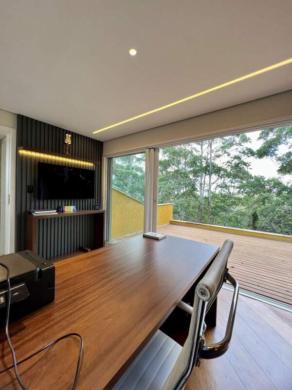 Excelente casa praticamente linear e mobiliada, com apenas um escritório montato no piso superior, são 4 suítes sendo três com closets, a suíte master conta com uma sala de banho com jacuzzi, chuveiro e pia senhor e senhora, o único cômodo que é no segundo nível é o escritório que possui uma vista definitiva para mata. Casa bem arejada com sua entrada com possíbilidade de abrir para área verde do condomínio que não pode ser construído (parte desta area verde a proprietária cuida e possui árvores frutíferas)
